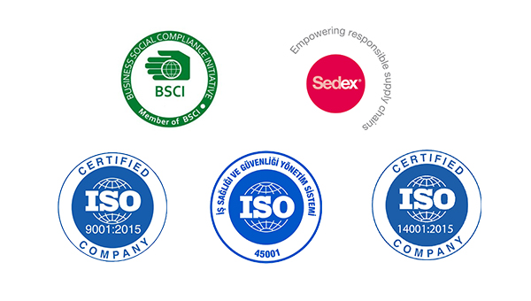 Uluslararası ticaretin gerektirdiği tüm sertifikalara ve belgelere sahip altyapımız sayesinde, global pazarlarda kabul gören standartlarda üretim gerçekleştiriyoruz. Ürünlerimiz; kalite, dayanıklılık, çevre uyumu ve insan sağlığı kriterleri açısından titizlikle kontrol edilerek termin hassasiyetiyle müşterilerimize sunulur.